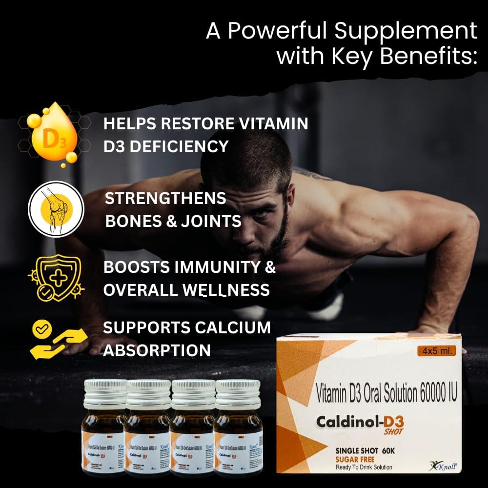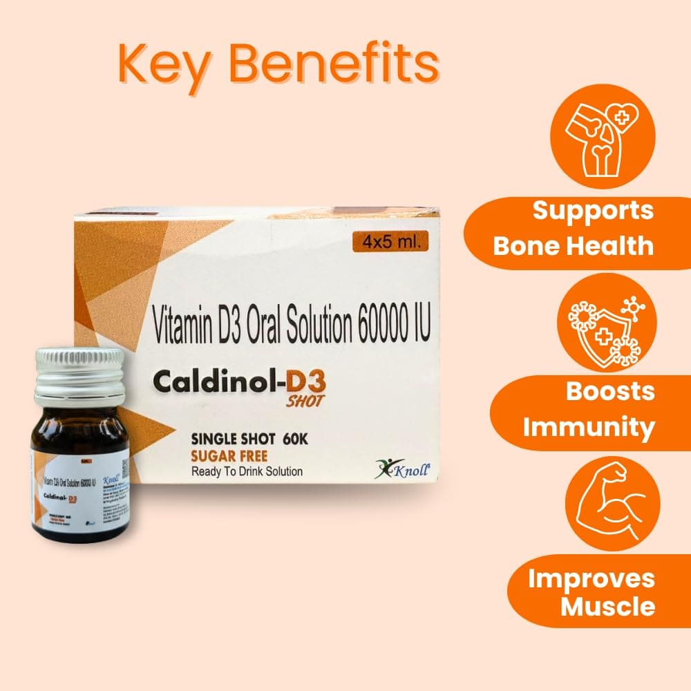 Caldinol-D3 Shot 4x5ml | Cholecalciferol (Vitamin D3) 60,000 IU Nano Droplet | High Strength Vitamin D Supplement
