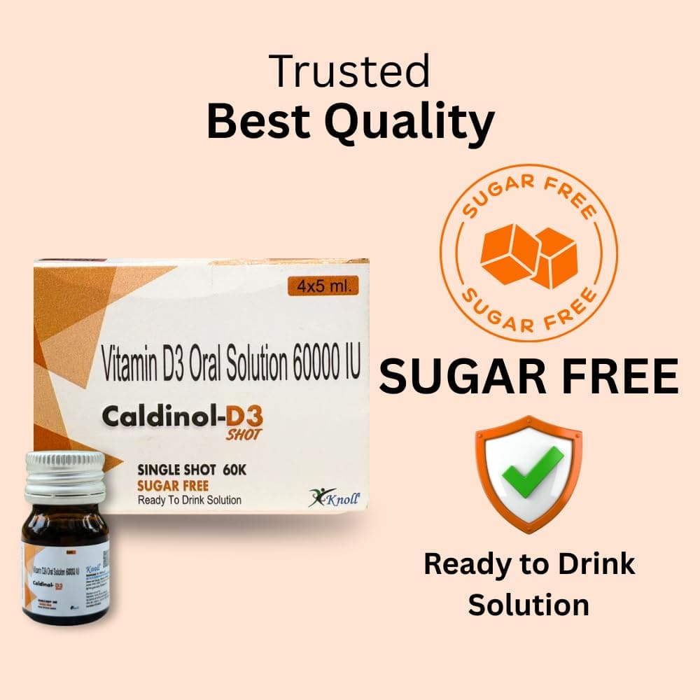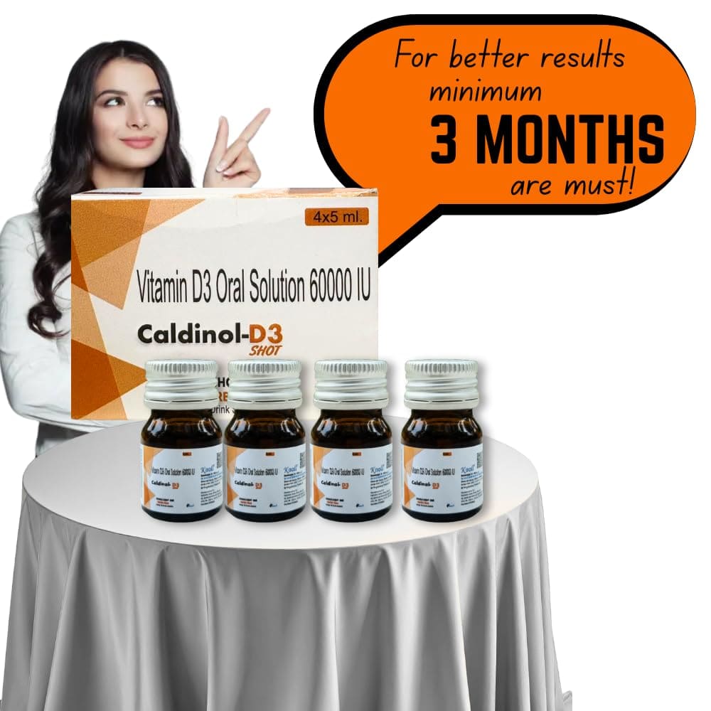 Caldinol-D3 Shot 4x5ml is a high-strength Vitamin D3 (Cholecalciferol) supplement formulated in an advanced nano droplet form for easy consumption and efficient absorption. Each ready-to-use liquid shot provides a measured dose of Vitamin D3, making it a convenient option for periodic supplementation.